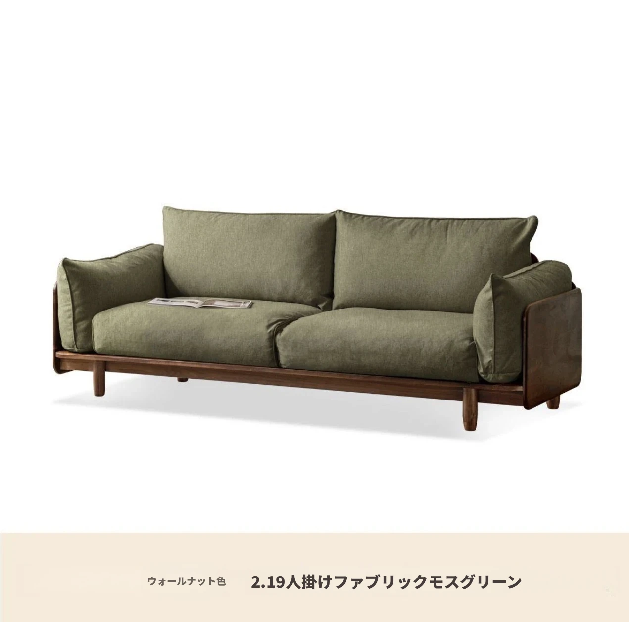 高くなったアップグレード版 オーク(ウォールナット色)2.19メートル3人掛けソファ(布地 モスグリーン)