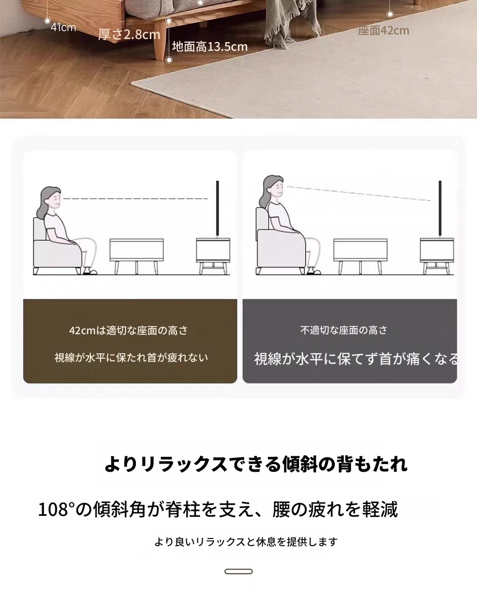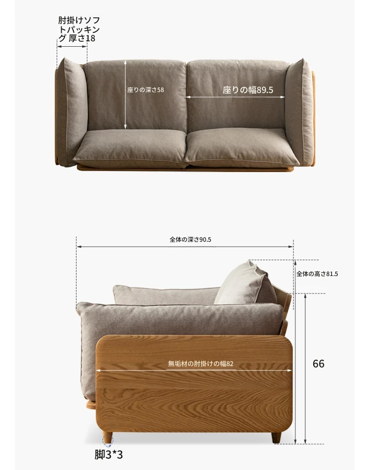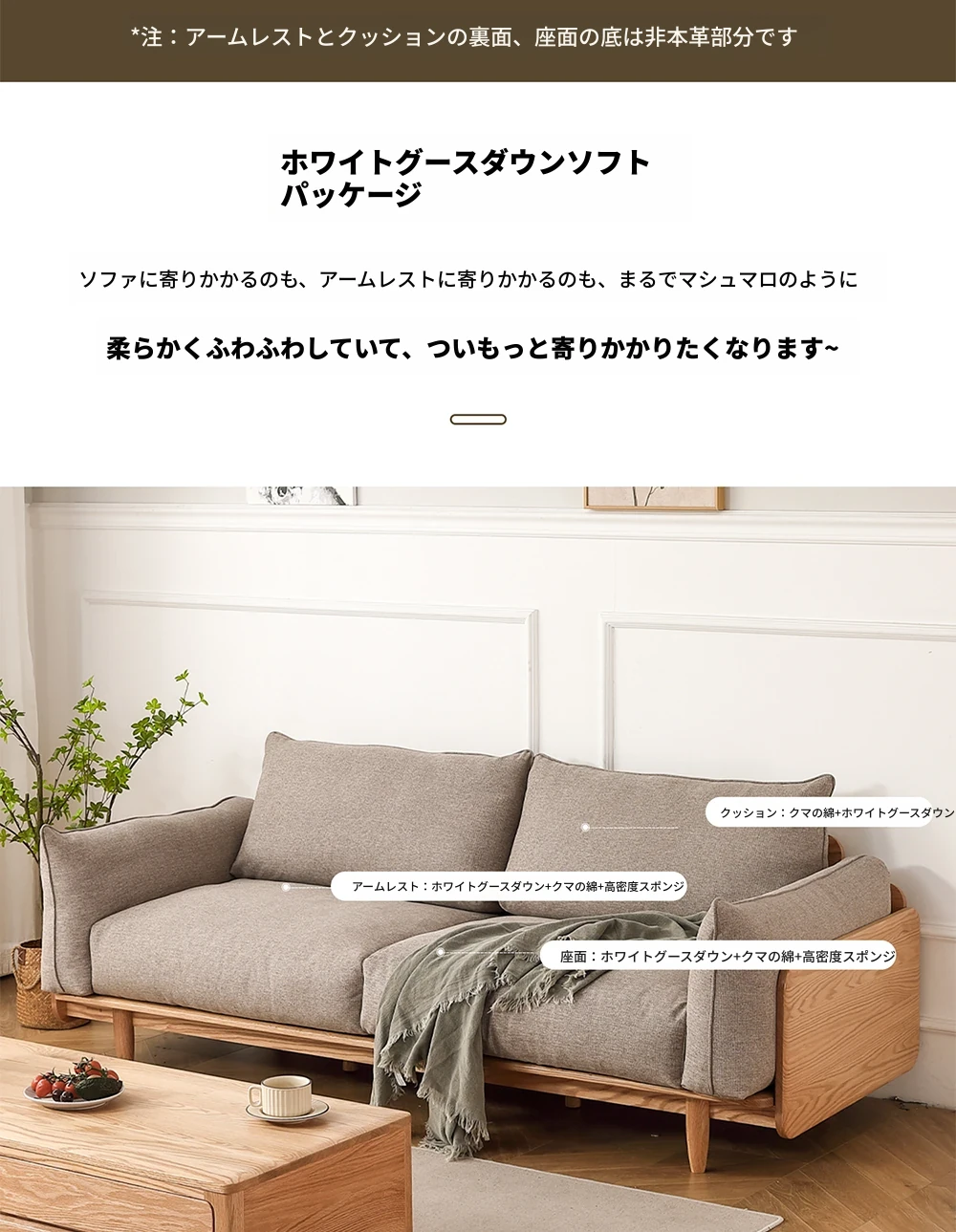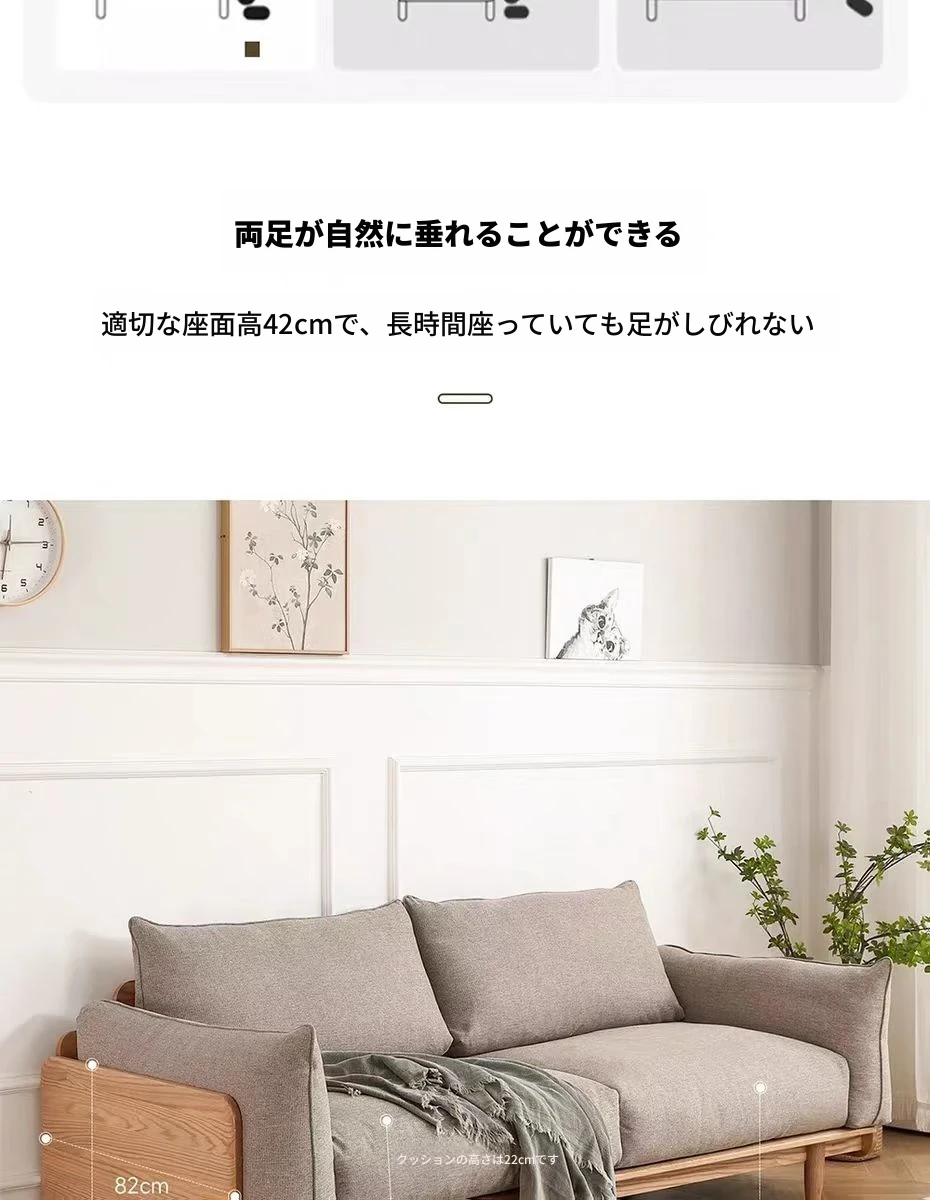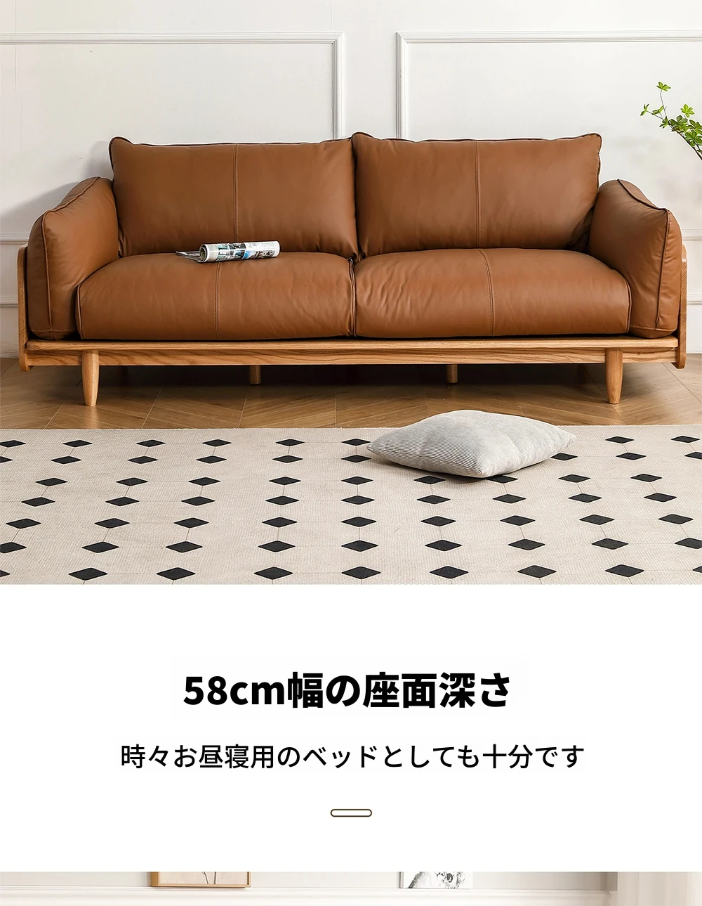 全実木製のレッドオーク真皮ソファー - 北欧スタイルのリビングに最適!高背もたれで快適さアップ、ナチュラルな木の温もりを感じるオリジナルデザインの布張りソファー。家庭用にぴったり!