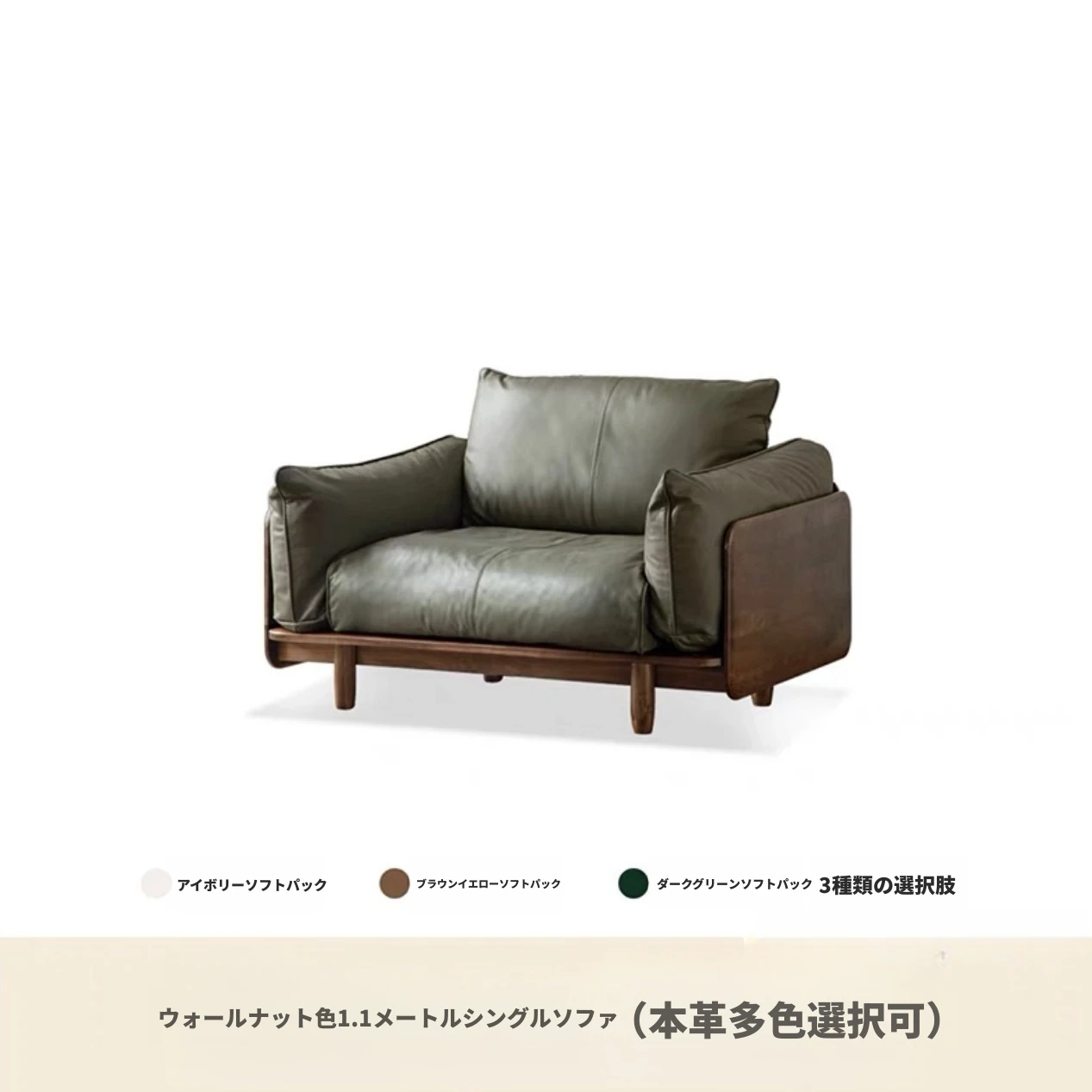高くなったアップグレード版 オーク(ウォールナット色)1.1メートル1人掛けソファ(本革 多色選択可)