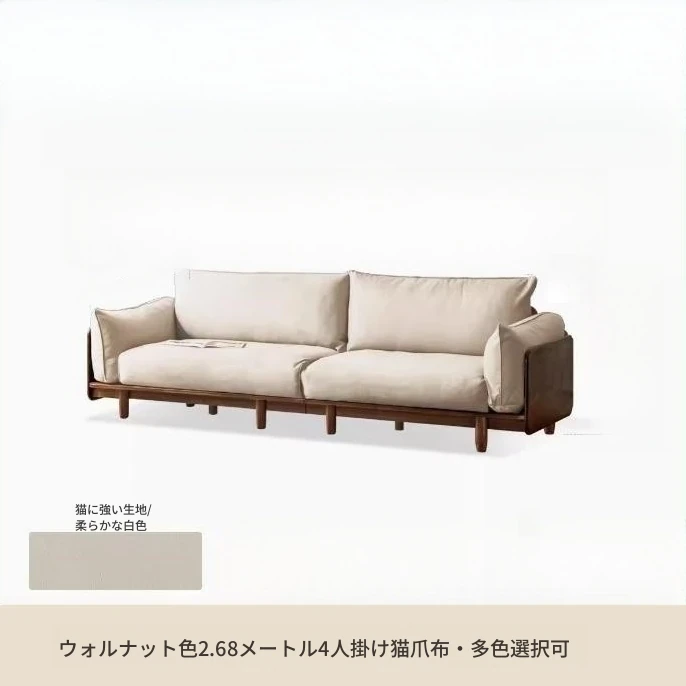 高くなったアップグレード版 オーク(ウォールナット色)2.68メートル4人掛けソファ(キャットクロー布 多色選択可)