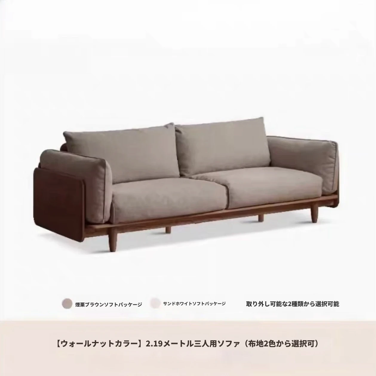 高くなったアップグレード版 オーク(ウォールナット色)2.19メートル3人掛けソファ(布地 多色選択可)