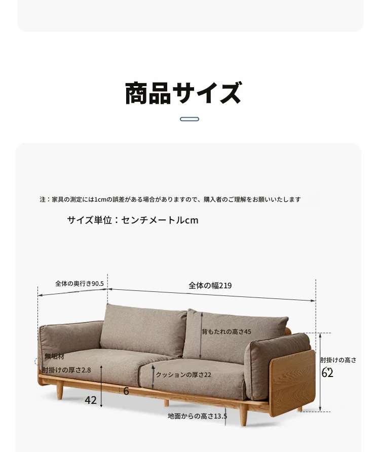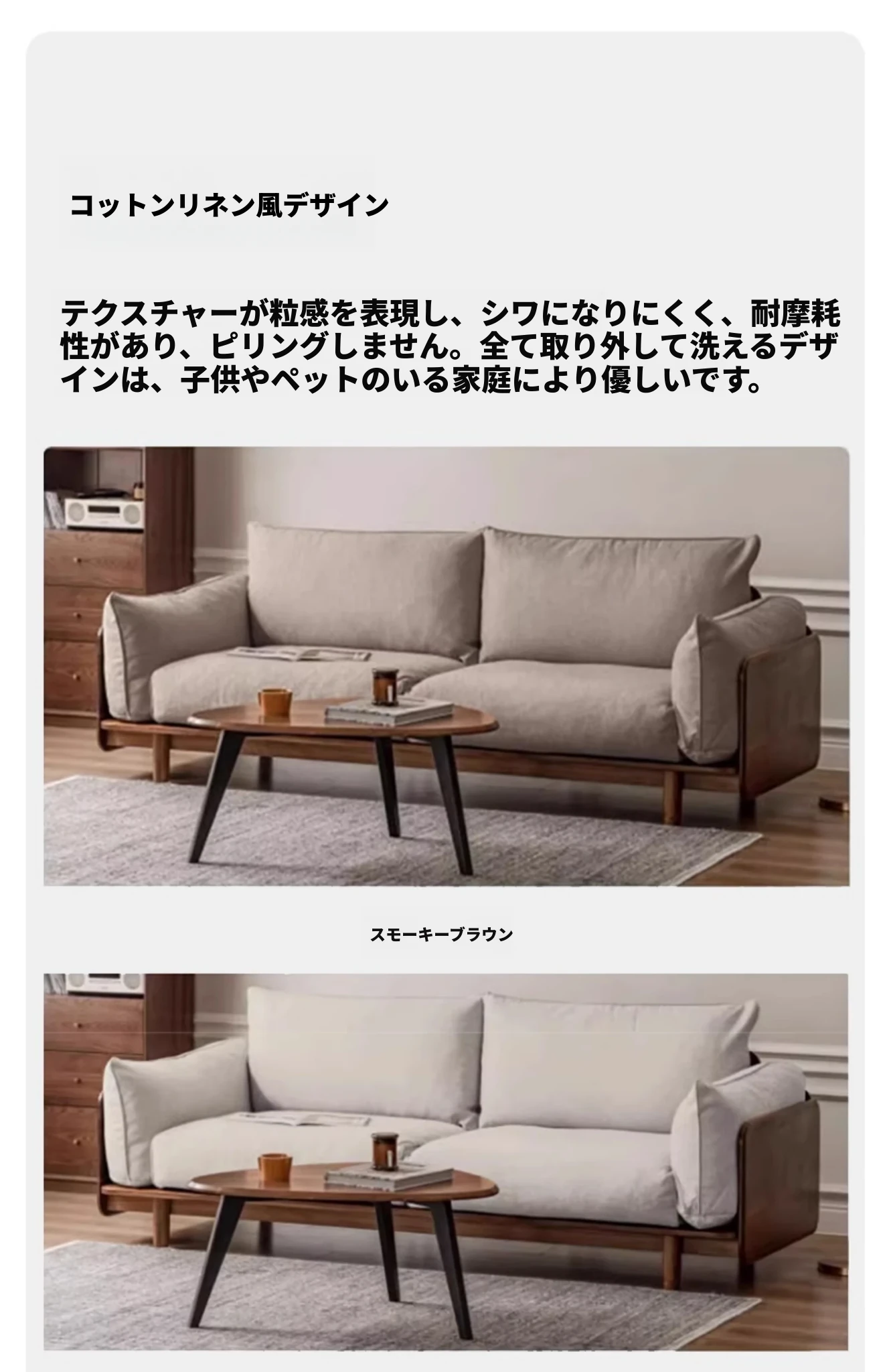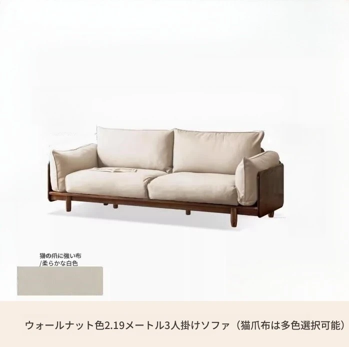 高くなったアップグレード版 オーク(ウォールナット色)2.19メートル3人掛けソファ(キャットクロー布 多色選択可)