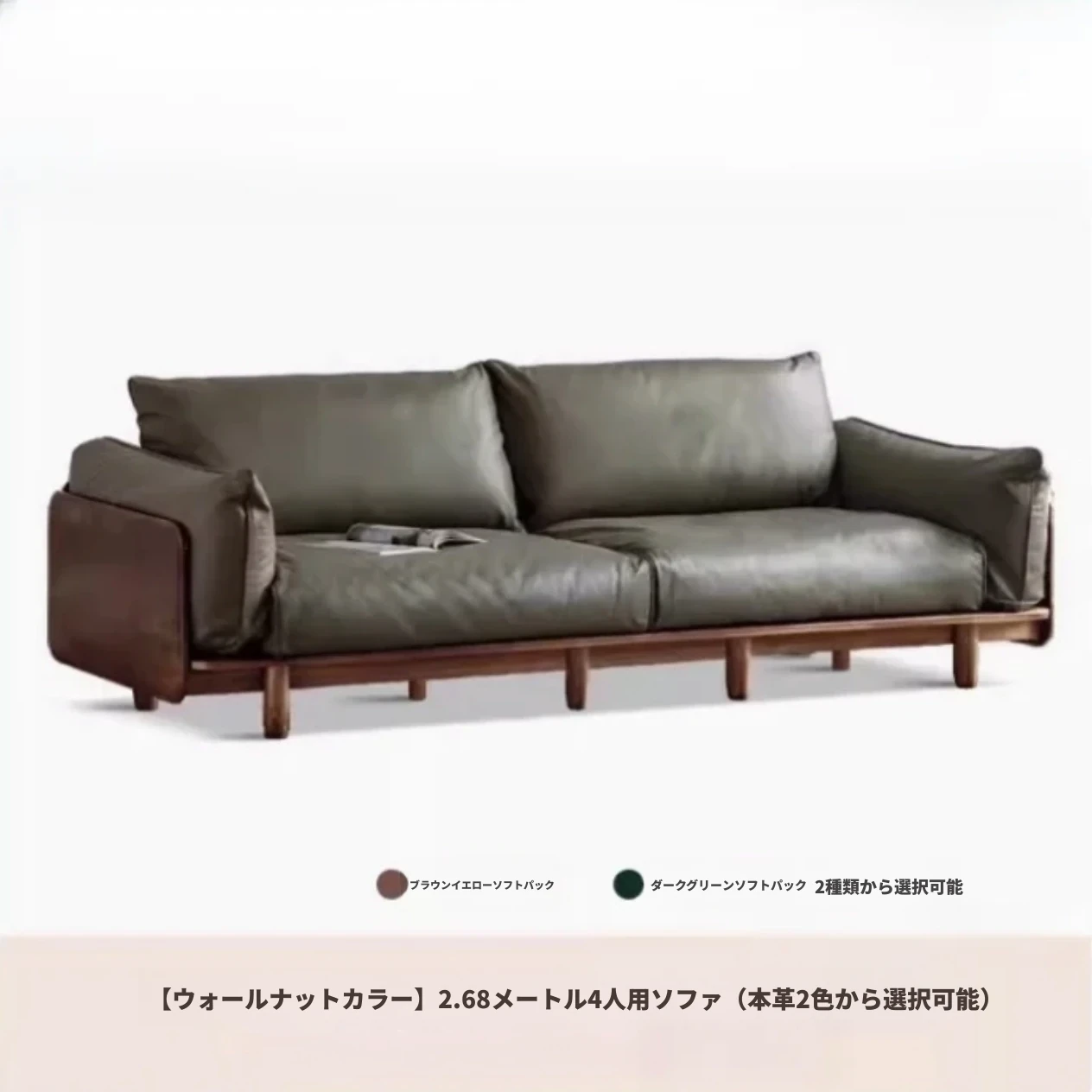 高くなったアップグレード版 オーク(ウォールナット色)2.68メートル4人掛けソファ(本革 多色選択可)