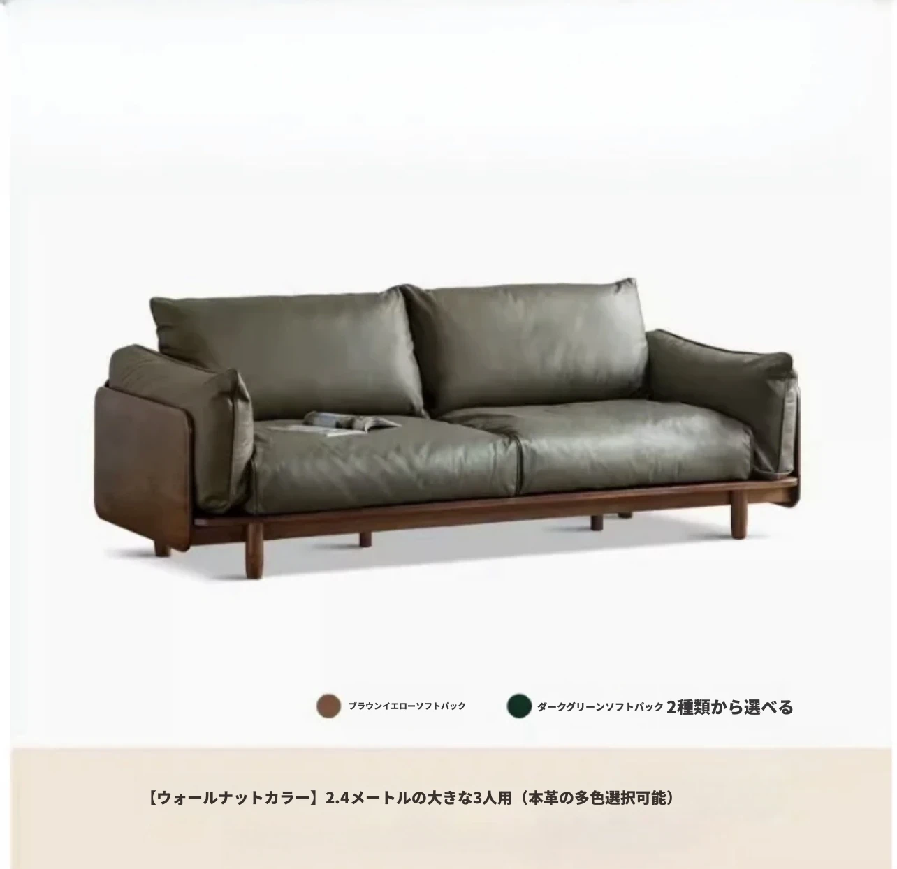 高くなったアップグレード版 オーク(ウォールナット色)2.4メートル大3人掛けソファ(本革 多色選択可)