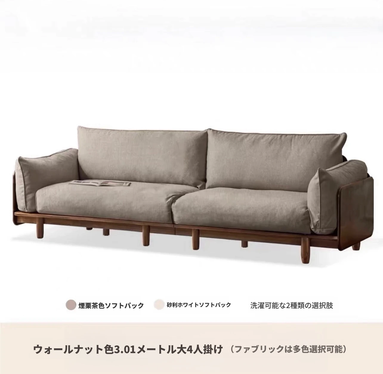高くなったアップグレード版 オーク(ウォールナット色)3.01メートル大4人掛けソファ(布地 多色選択可)