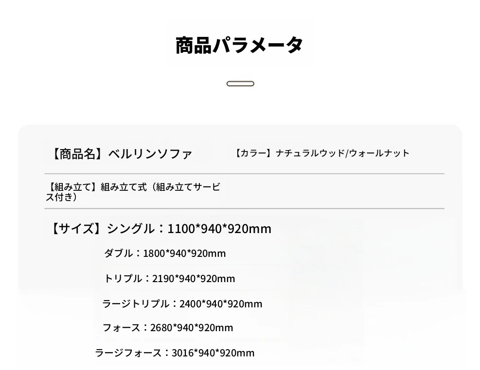 高くなったアップグレード版 オーク(ウォールナット色)2.68メートル4人掛けソファ(布地 多色選択可)