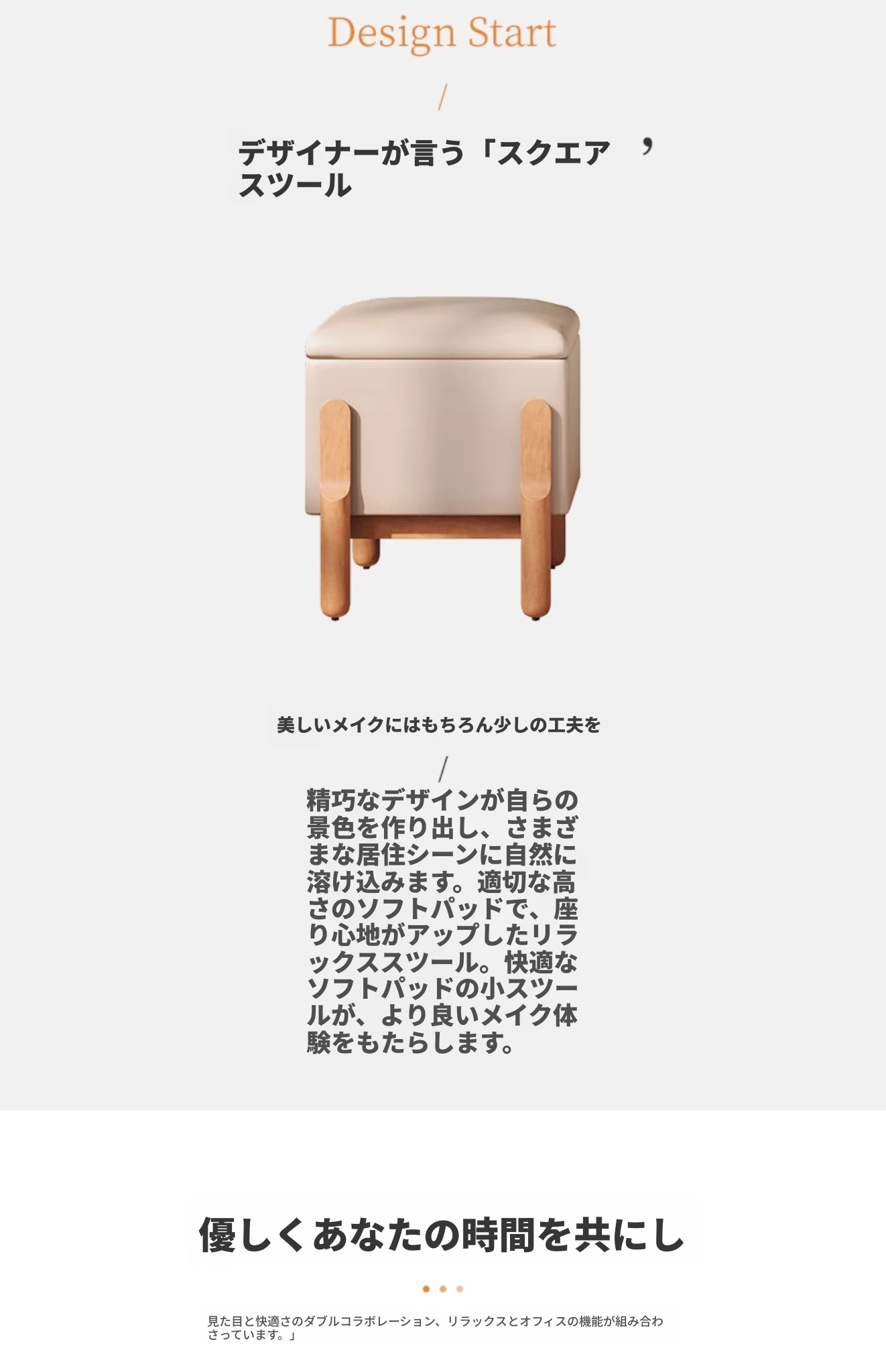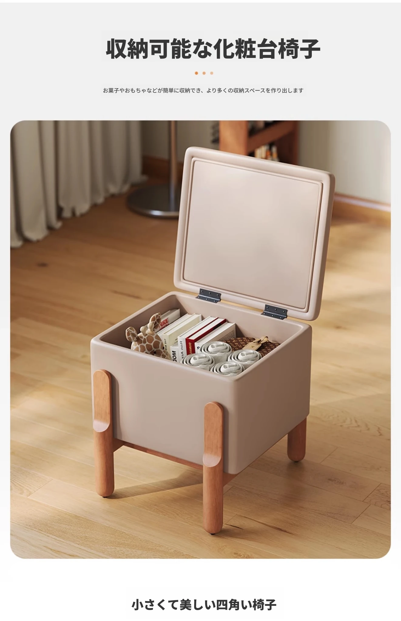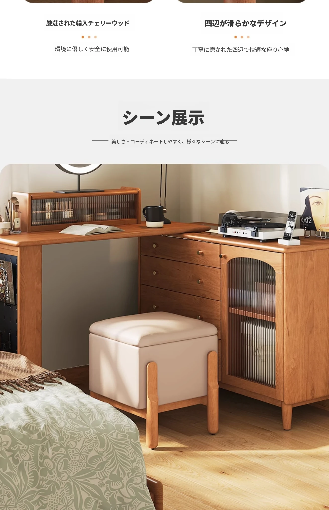 【ふっくら/収納メイクスツール】座面キャットスクラッチ布/北米チェリーウッド