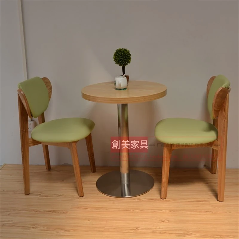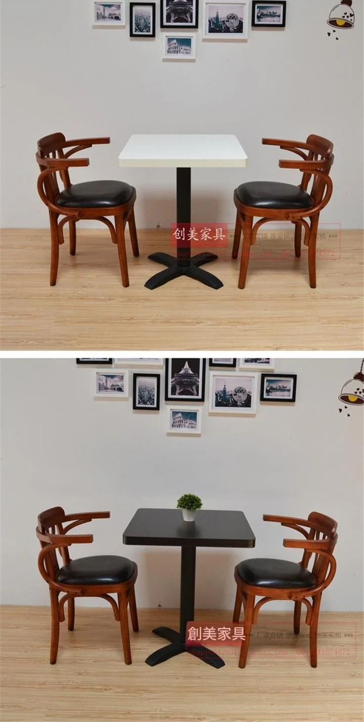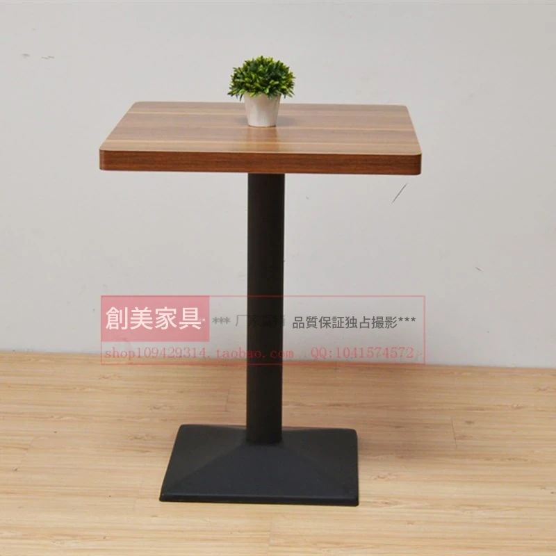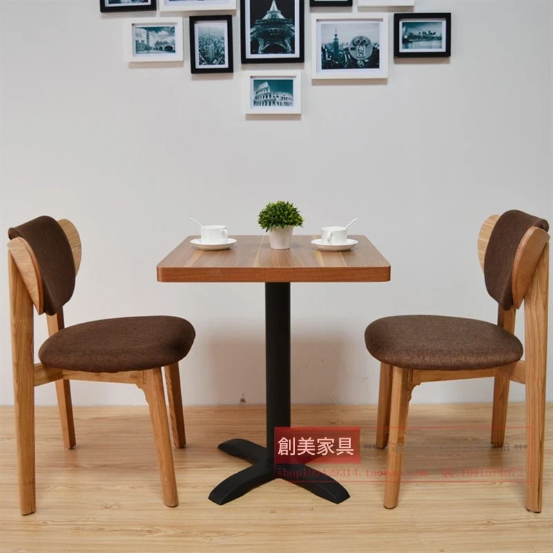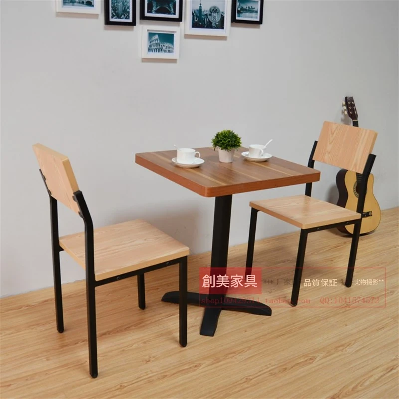 アイアン製小型スクエアテーブル|おしゃれな談話テーブル|カフェ・ティーショップにぴったり|ファストフードやミルクティー店にも最適|高品質の無垢材椅子付き!お客様を惹きつけるスタイリッシュなデザイン!