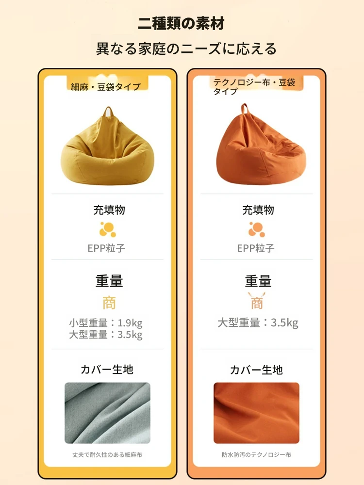 70x80cm 小型ビーンバッグソファ(カバー+粒子)