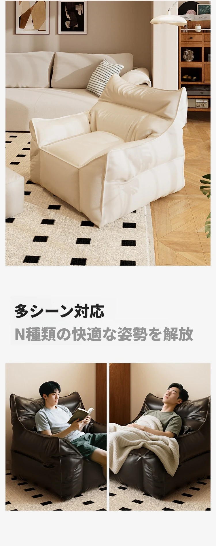 リラックスできるソファ!寝転んでも寝てもOK!2人用、寝室やリビング、バルコニーにぴったり!畳にも最適なビーズソファ。ワンちゃんやペットも大喜び!あなたの癒し空間を演出します!