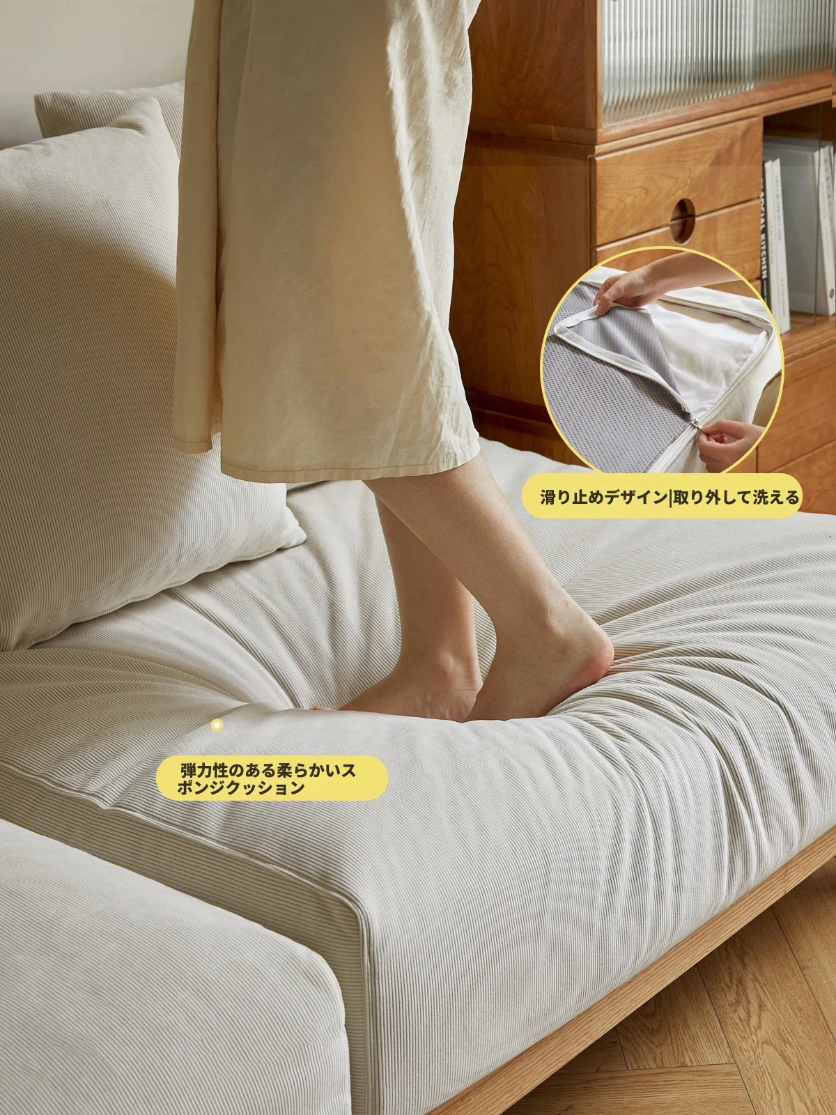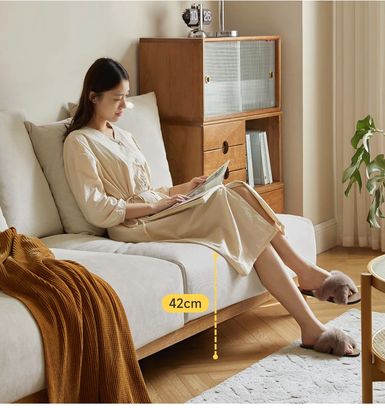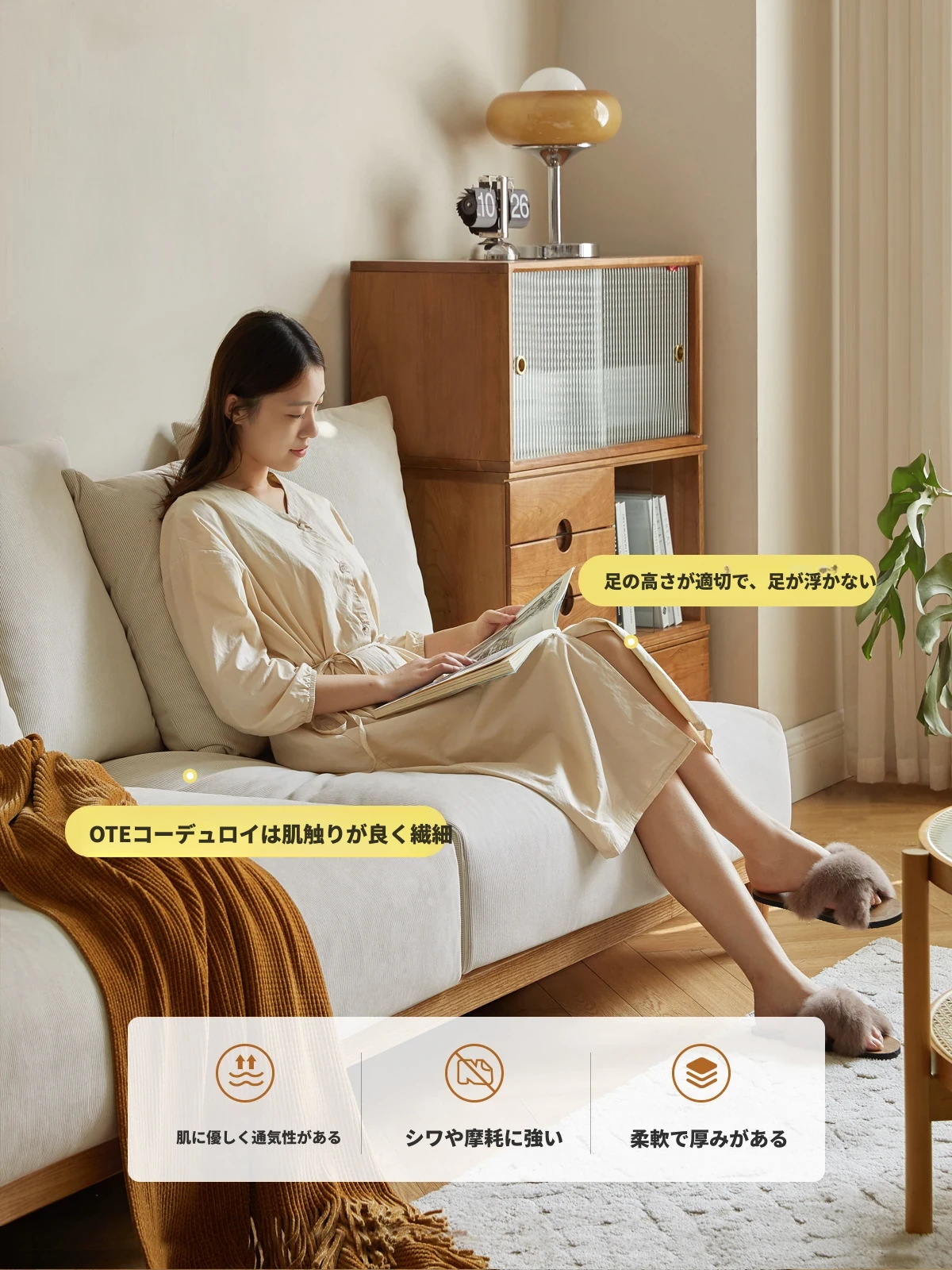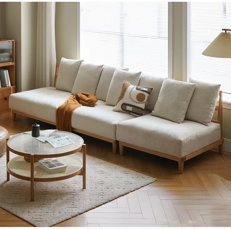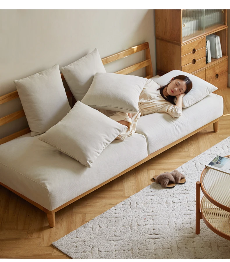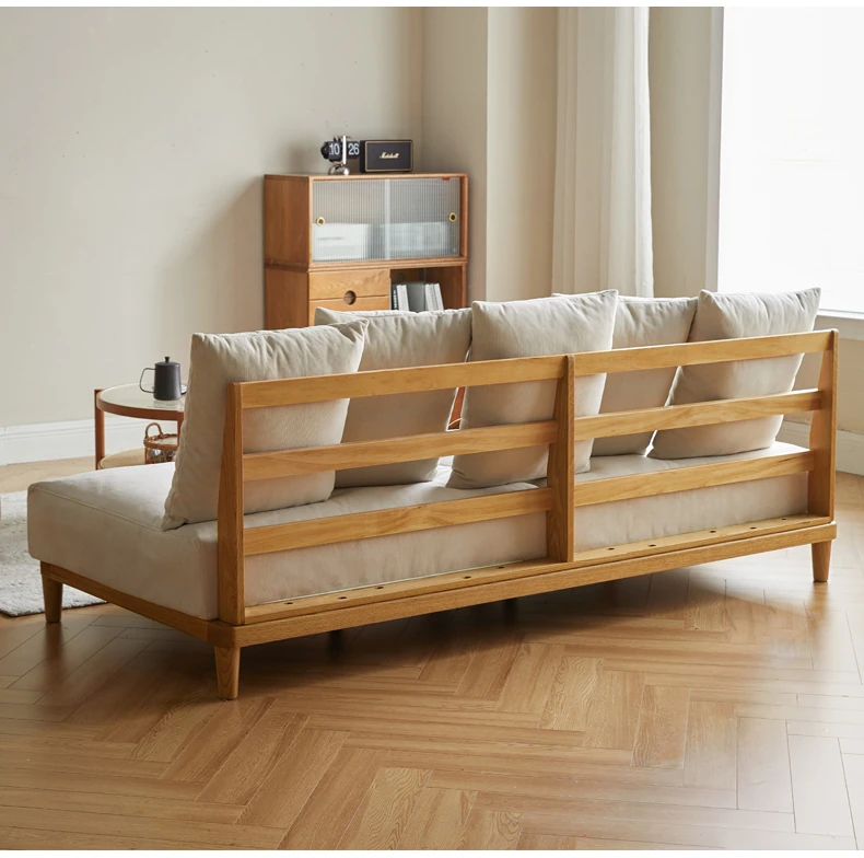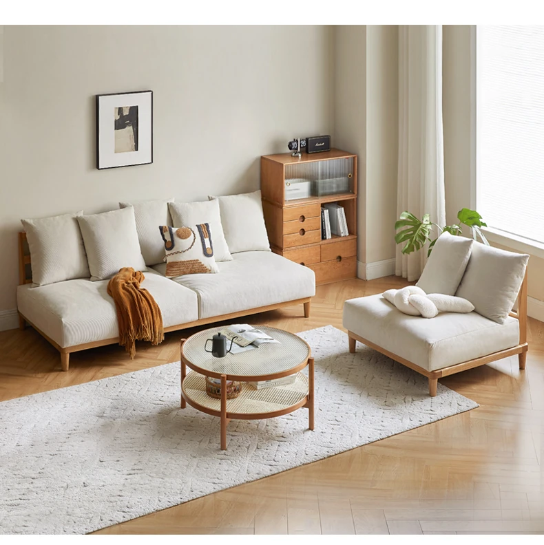 【魅力の一人掛け】天然木使用のVISSAモダン北欧風オーク製ソファー - 小さなリビングに最適な布張りアームレスデザイン!