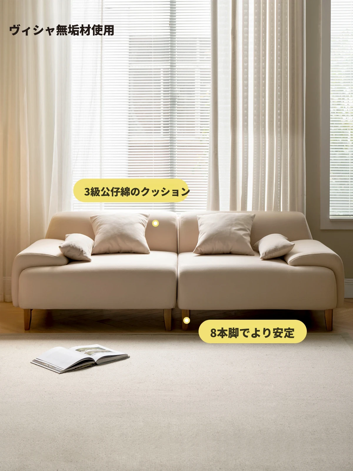 北欧風ヴィッサラグジュアリーファブリックソファー - コンパクトリビングに最適!モダンでシンプルなデザイン、実用的な木製ストレージ付きコーナーソファー。