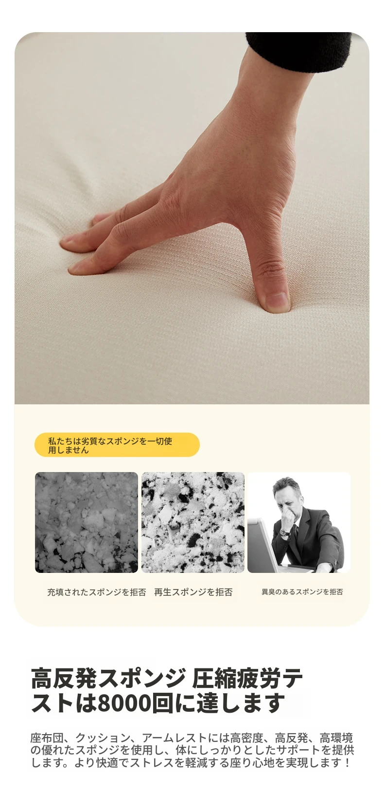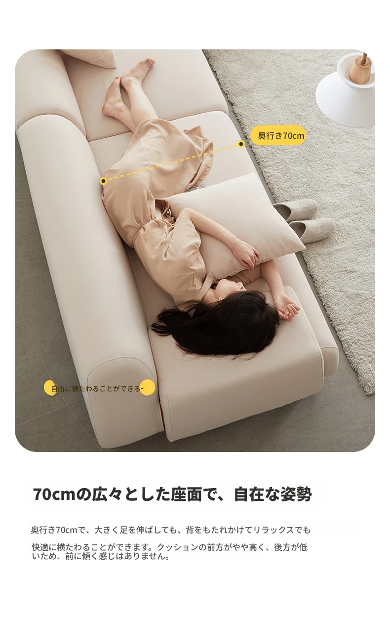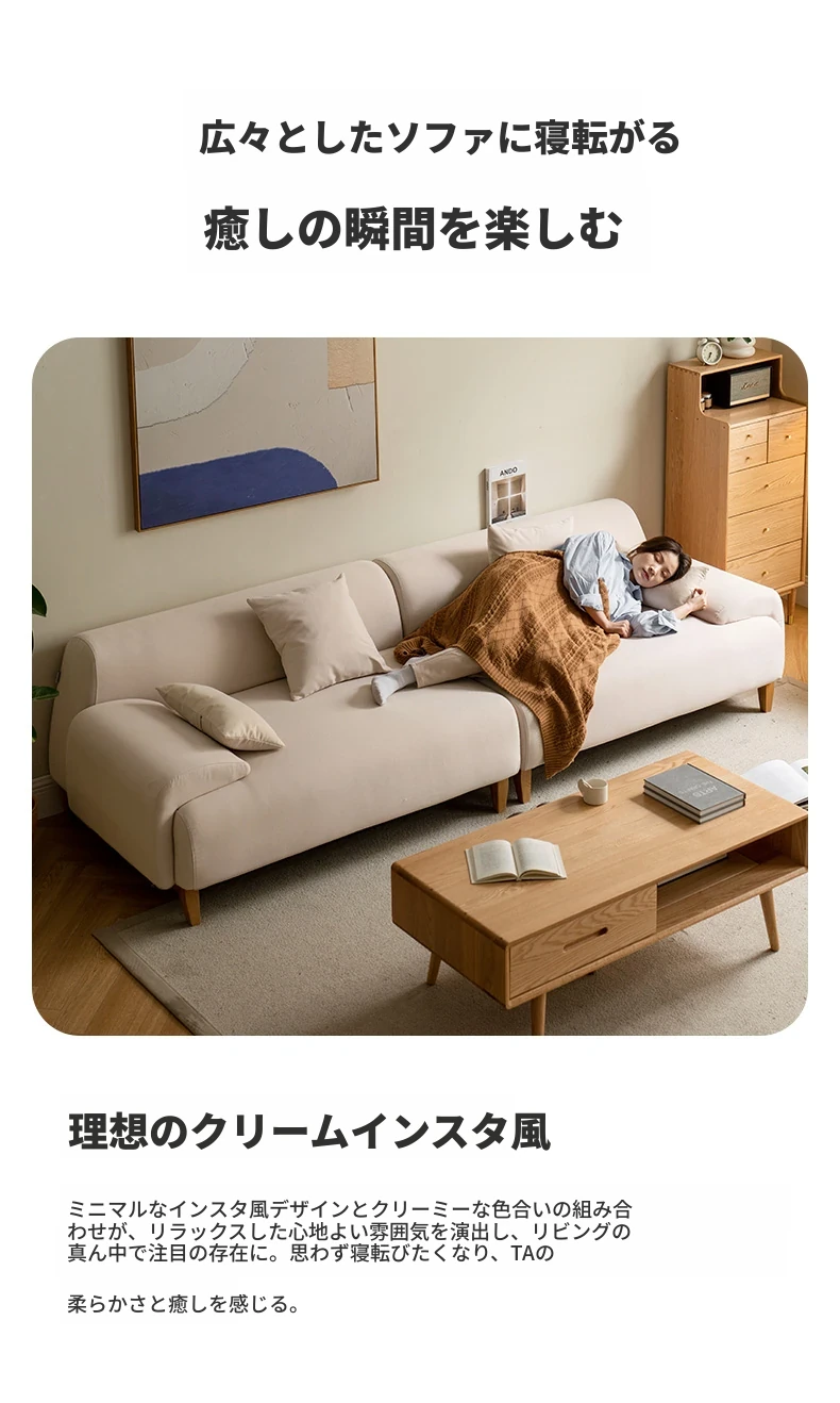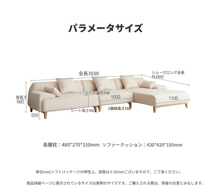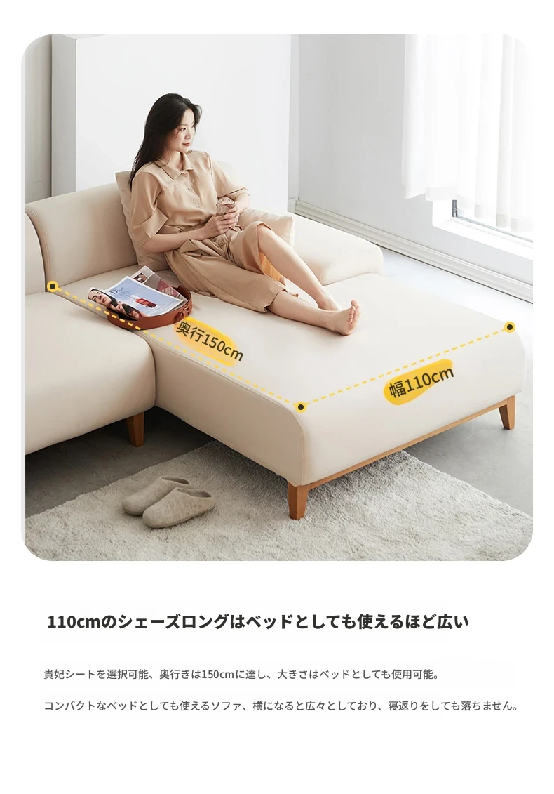 3.55m 四人掛けコーナー右シェーズロング(アイボリー)(3550*1800*680mm)