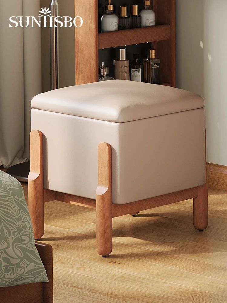 暖かみのあるアメリカンスタイルの無垢木製スツール - ダイニングやドレッサーに最適!深い色合いの木製座面で、どんなインテリアにもマッチ。お手入れ簡単で、長く愛用できる一品です!
