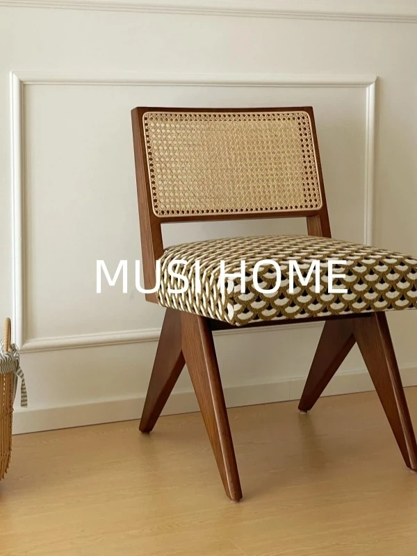 Enchanting Wooden Dining Chair - Stylish Single Chair for Living Room and Dining Room, Featuring French Country, Vintage Chinese, and Japanese Rattan Design. Perfect for Any Home Décor!