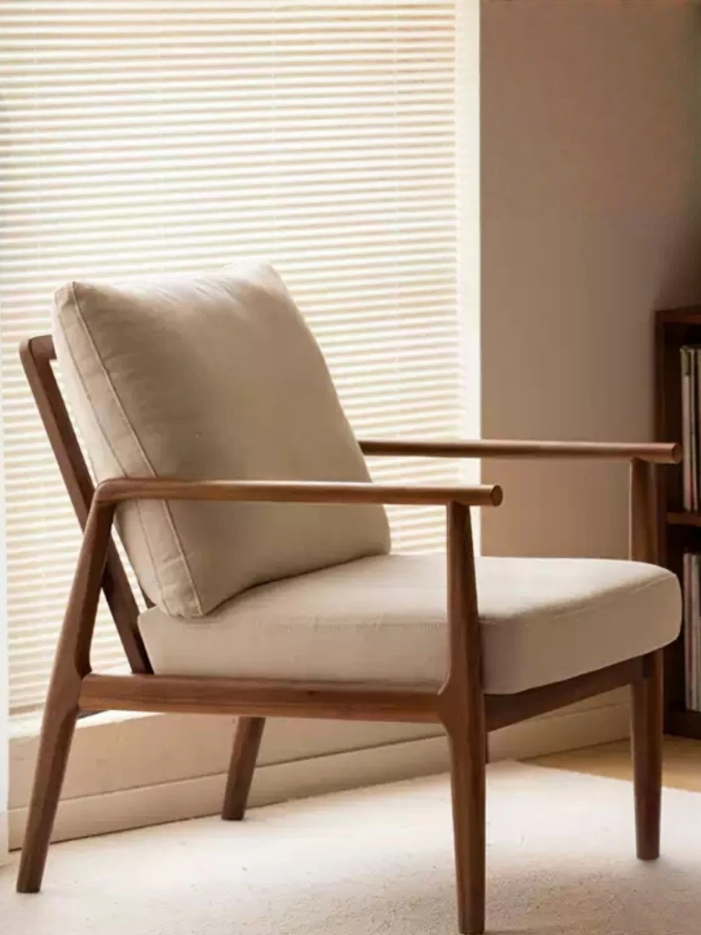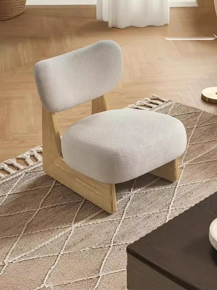 Nordic Style Solid Wood Lounge Chair – Creative Designer Armchair with Wabi-Sabi Aesthetic, Cozy Lambswool Upholstery – Perfect for Home Stays and Relaxation