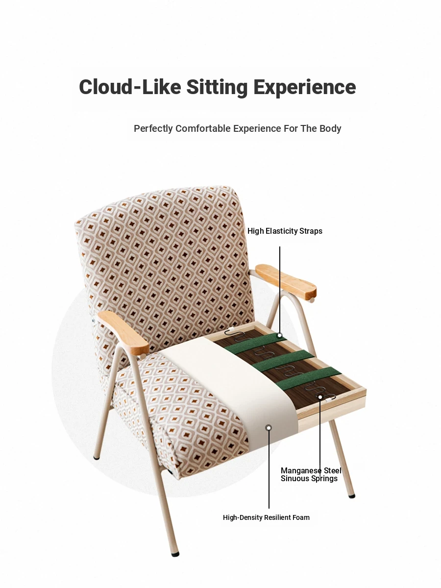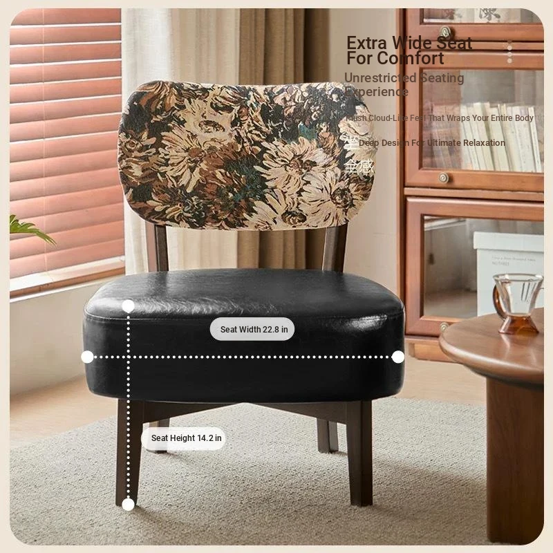 Retro Single Sofa Chair - Stylish Living Room and Bedroom Armchair, Italian Solid Wood Leisure Chair for Balcony, Cozy Home Backrest Stool