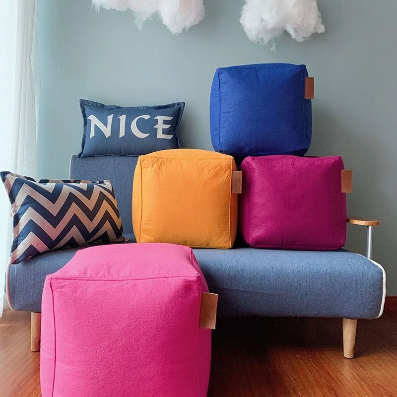 Authentic Lazy-Life French Bean Bag Stool - Comfortable No-Bone Shoe Bench with Thick Square Felt Seat - 50% Off!