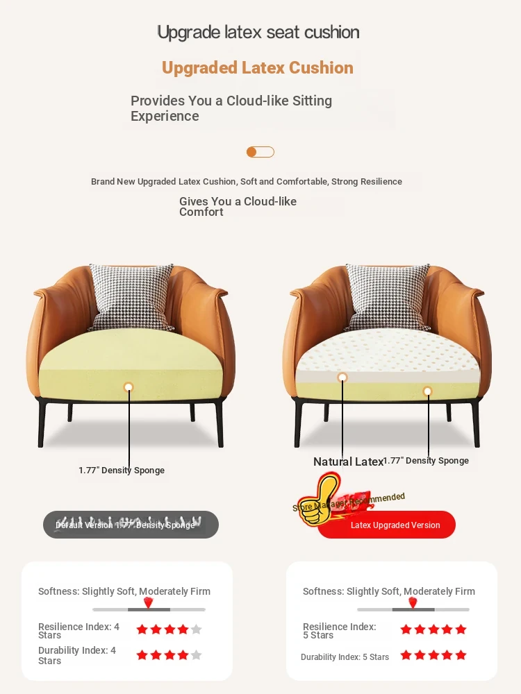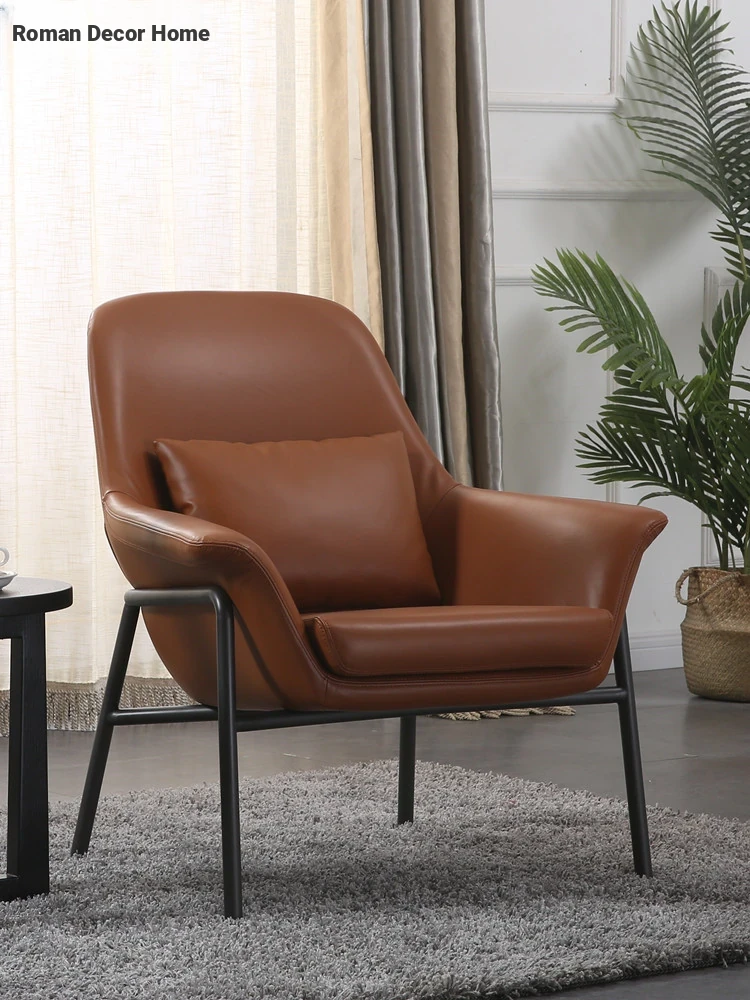 Modern Minimalist Single Sofa - Luxurious Leather Armchair for Living Rooms, Cafés, Hotels, and Bars - Designer Reception Chair