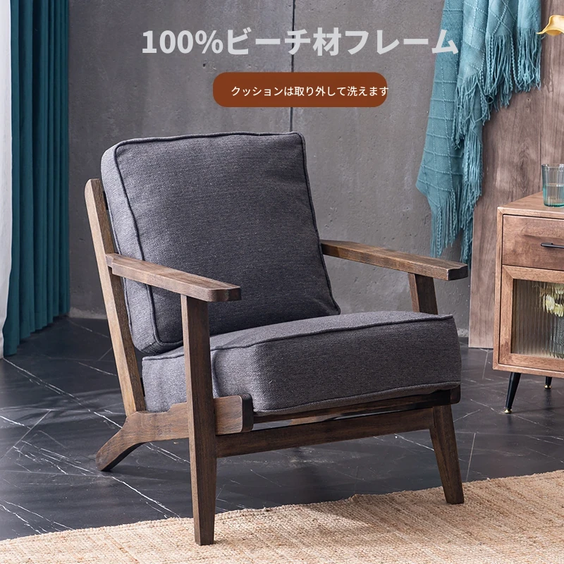 北欧風ヴィンテージ風全木製ハンドルリラックスチェア|アメリカンカントリー風一人掛けソファ|民宿・ホテル・会議に最適なスタイリッシュな空間を演出!