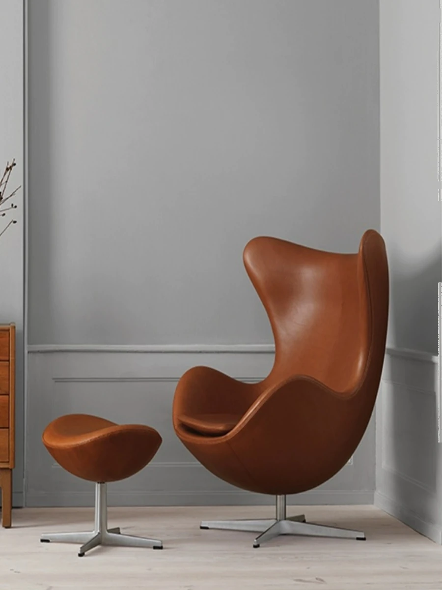 北欧デザイン 単人用サロンチェア エッグチェア モダンアート風 ホテルやリビングに最適 上質レザー使用のリラックスチェア