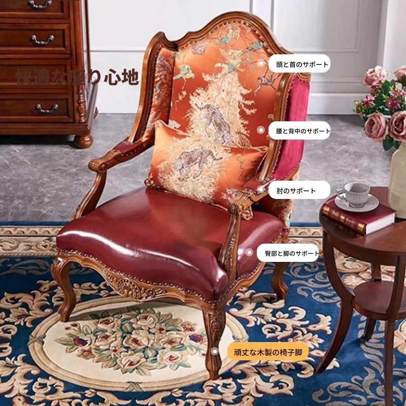 アメリカンスタイルの高級カジュアルチェア|デザイナーの本革一人掛けソファ|欧州風リビングにぴったりな無垢材製タイガースツール|ビジネスミーティングにも最適な談話用チェア!